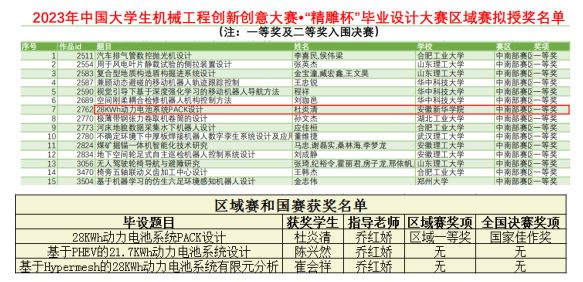 本网讯(通讯员:乔红娇)5月28日,中国大学生机械工程创新创意大赛•中国机械行业卓越工程师教育联盟第六届“精雕杯”毕业设计大赛决赛,在重庆大学成功举办。贝博官网智能制造学院乔红娇老师指导的2019级机械设计制造及其自动化2班的杜炎清同学的毕业设计—《28KWh动力电池系统PACK设计》在全国100余所高校的1036作品中脱颖而出,荣获中南部赛区一等奖,并入围“精雕杯”毕业设计大赛全国总决赛,最终获得“国家级佳作奖”,充分展示了BB贝博艾弗森官方网站机械学子的风采!