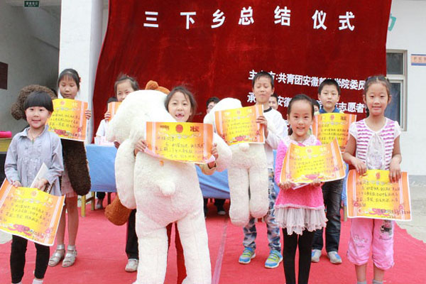 新华学院报讯(学生记者 彭敏 熊雁林)为宣扬志愿者精神,深入农村底层义务奉献,贝博官网从2008年与合肥市肥西县韩圩小学取得联系,开启三下乡义务支教活动。5月15日下午,BB贝博艾弗森官方网站“和谐阳光,快乐成长”第五期三下乡总结仪式在韩圩小学举行,对本年度义务支教活动进行总结。