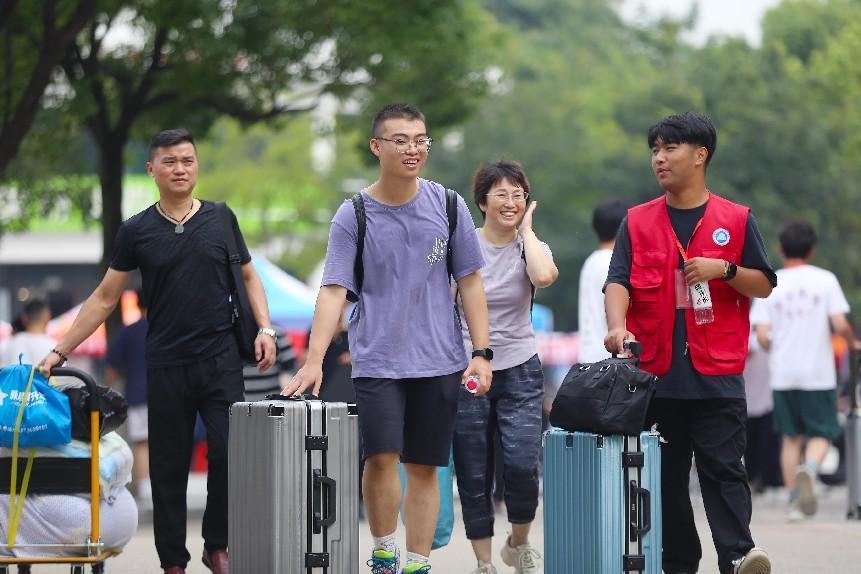 “我们在家时还担心对学校不熟悉,今天一下车就看到校门口有很多志愿者在引导,同学们都很热情,还帮我们搬行李。孩子在这样好的氛围下学习,我们也很放心和满意!”文化与传媒学院新生韩旭的家长笑着说。