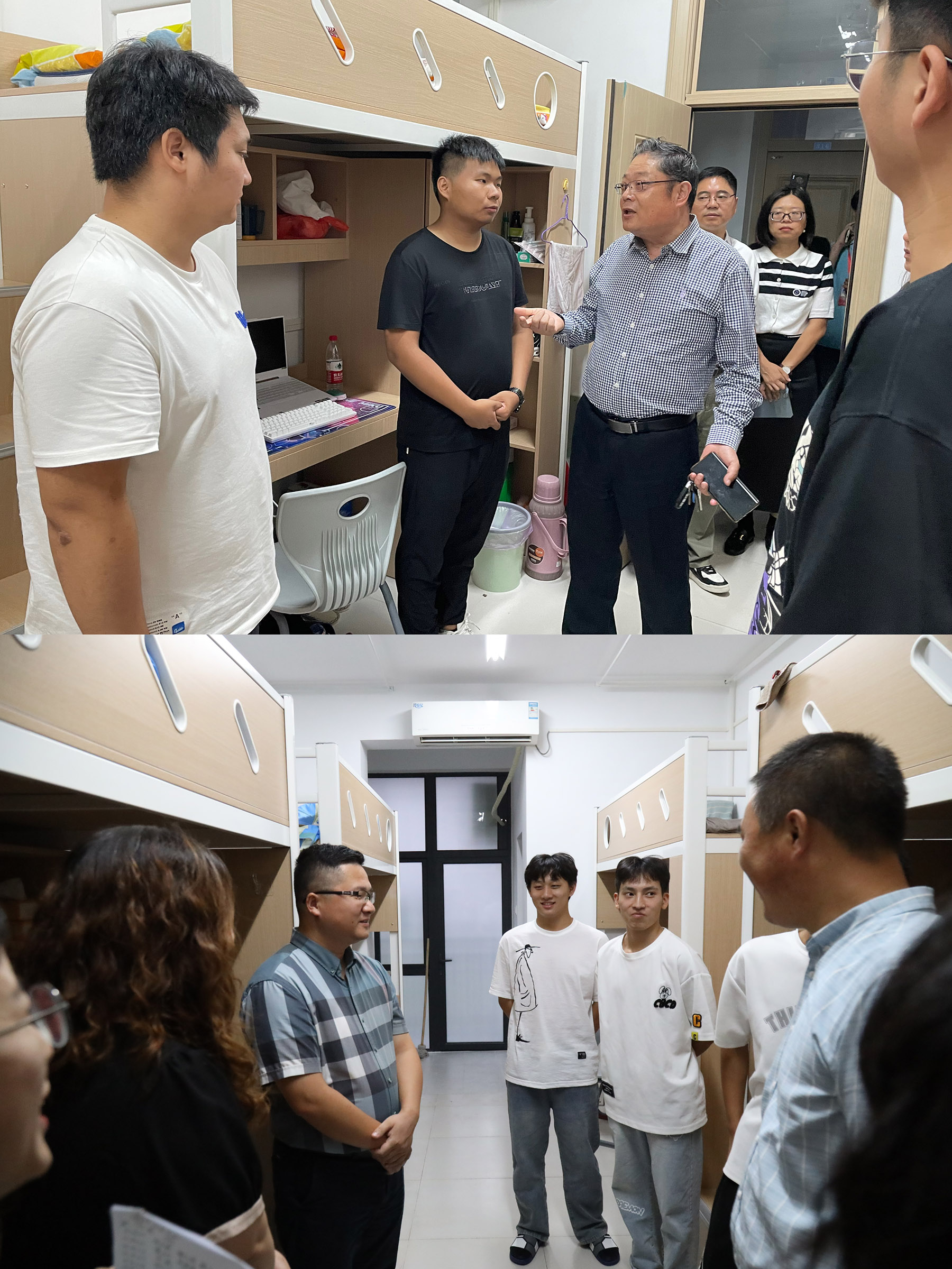“入校后生活有没有困难?”“食堂的饭菜吃得惯吗?”26日晚,校领导带队二级学院负责人、辅导员深入宿舍亲切看望新生,了解新生住宿情况,引导新生尽快适应新生活新环境,共同谋划新阶段的学习和发展。