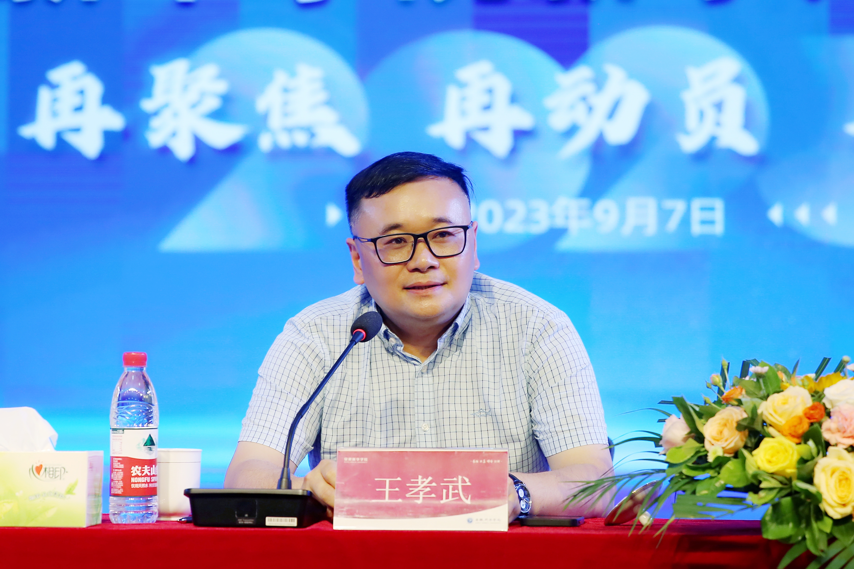立足新起点,聚力谋发展。会上,王孝武部署新学期学校发展大方向,提振广大教职工继续开拓奋进,勇于担当的信心和决心。他提出,一是新学期要有新气象。要在囯家教育强国战略引领下寻找新机遇,担当新作为,要凝聚好新员工的活力和创造,教育好新同学抓住大学的新起点,开启人生成才成长新篇章。全体教职员工要以饱满的热情和专业的精神投入到学校各项工作中。二是新学期要有新作为。要进一步提高思想认识和工作站位,聚焦审核评估工作,加强对“意义的认识、定位的认识和自己的认识”,从哲学层面思考如何更好地做到“安身立命、建功立业和成就意义”;在一个组织一个团队中要善于做一个承诺者、合作者,要将个人成长和单位发展紧紧相连,在做事的过程中有贡献、被赋能!要勇于和强者“碰撞”的自己,躬身入局,多做给予者、反思者,少做索取者、评论者,不做“躺平”者、抱怨者。三是新学期要有新提升。要勤思考、常总结,经常“回头看”,不断提升自我认知,推动职业发展,凝聚推动学校高质量发展的强大动力。