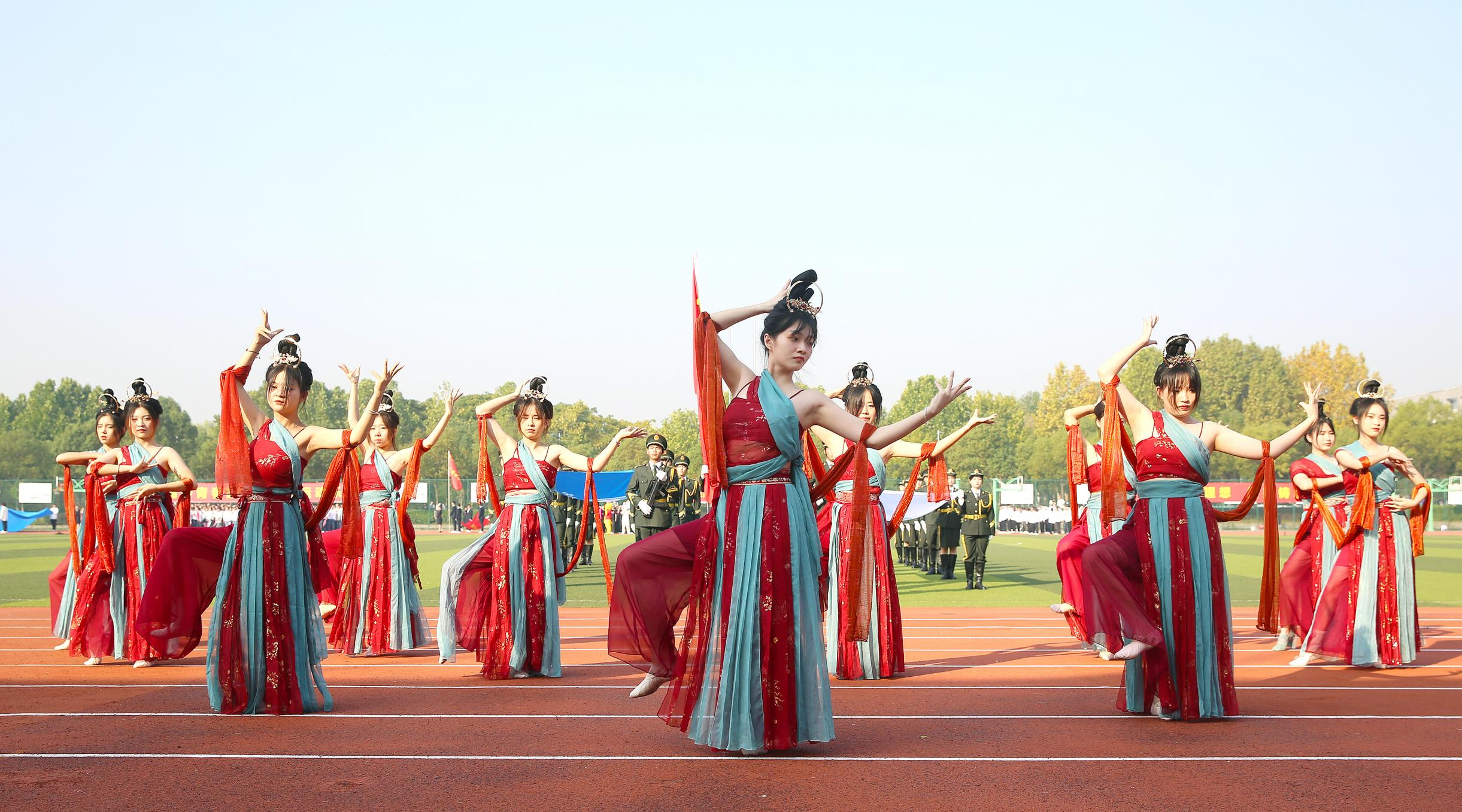 青春活力,精彩纷呈。各二级学院方阵依次走过主席台。“出彩中国语,学识贯中西”,外国语学院/国际教育学院学子昂首阔步亮相运动场,她们带来的《寻梦敦煌》,用霓裳一舞邀大家共赴一场“敦煌美梦”。“精工制造、实学信通”,电子工程学院/智能制造学院学子齐声呐喊“电智青年,未来属于我们!”。大数据与人工智能学院学子的传统川剧“变脸”表演将开幕式推向高潮。药学院学子身着创意“布洛芬”服装,与传统五禽戏表演相得益彰。艺术学院学子创意地将把PS、AE等专业软件“穿”在了身上,展现出了敢于追梦、“艺”往无前的青春面貌。文化与传媒学院学子邀请可爱的学龄前小朋友们一同表演,将青春的颜色“染”在祖国花朵的身上。