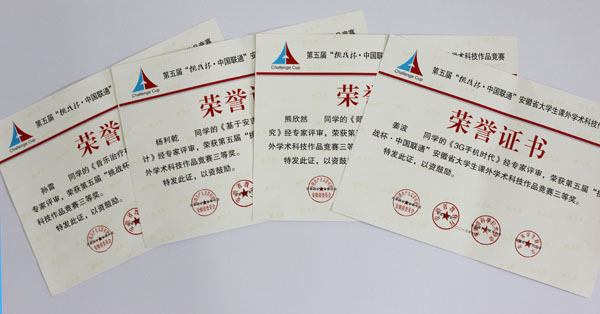 在安徽省终省决赛中,贝博官网学子展示了良好的竞技状态和精神风貌,经过激烈角逐,电子通信工程学院辛安文、陈凯、林以想三位同学的作品《智能控制开关装置》,商学院陈中华、程野、李云云三位同学的作品《蜘蛛结网结构的讨论与优化》均获二等奖,土木与环境工程学院熊欣然同学的作品《郯庐断裂带安徽区段农居的地震安全性能研究》,商学院杨利乾同学的作品《基于安吉汽车物流公司的物流运输方案设计》,商学院孙雷同学的作品《音乐治疗在大学生心理健康中的重要作用》,动漫学院姜波同学的作品《3G手机时代》获三等奖。