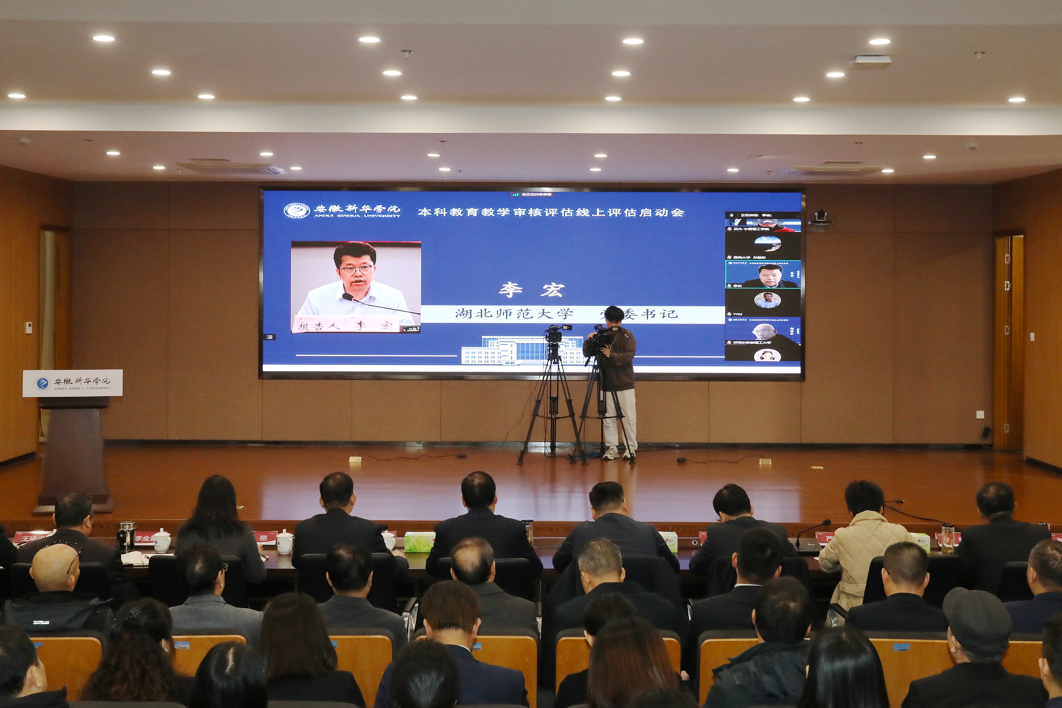 本网讯(通讯员:汪青 王亚君 摄影:翟漱文)11月13日,贝博官网召开教育部新一轮本科教育教学审核评估线上评审启动会。教育部本科教育教学审核评估专家组组长、湖北师范大学党委书记李宏及专家组全体成员,省教育厅评估中心负责人,新华集团领导和全体校领导出席会议。学校中层及以上管理人员,校级督导代表、教师代表、学生代表参加会议。会议采取“线上+线下”相结合的形式召开,第一阶段由省督导专员、校党委书记邸建伟主持,第二阶段由专家组组长李宏主持。