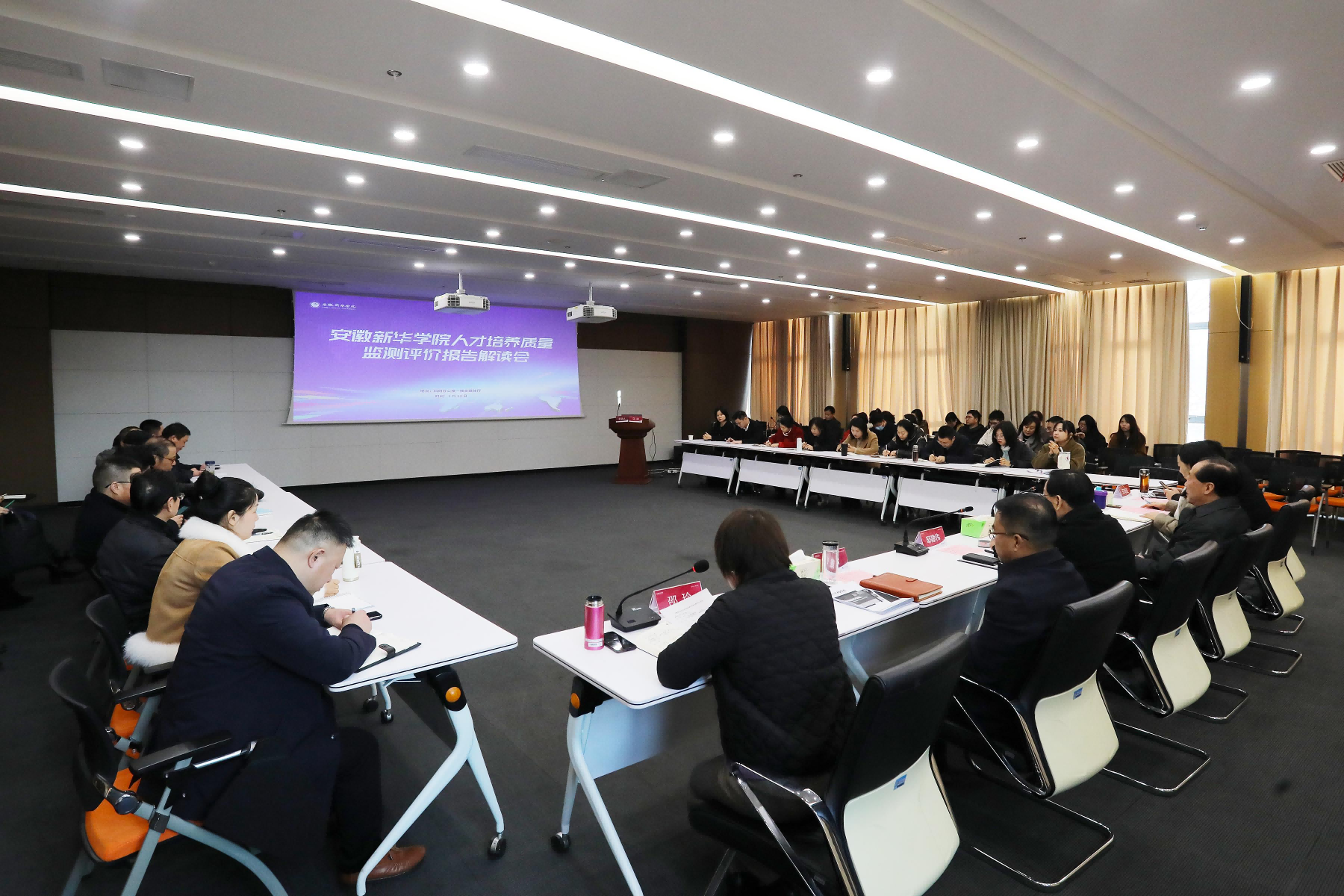 最后,储国定作总结讲话。他指出,一是要以“一流大学,百年新华”为目标愿景,以立德树人为根本出发点,以质量建设为抓手,全面提升学校的人才培养质量;二是要进一步明确学校的人才培养目标和定位,围绕当前新形势新变化,创新工作体制机制,为社会培养更多高素质的应用型人才;三是要进一步开展诊断与改进工作,各部门各学院要以报告结果为落脚点,充分剖析报告数据,查找不足,及时修正、改进,全面提升学校教育教学、服务与管理工作质量。
