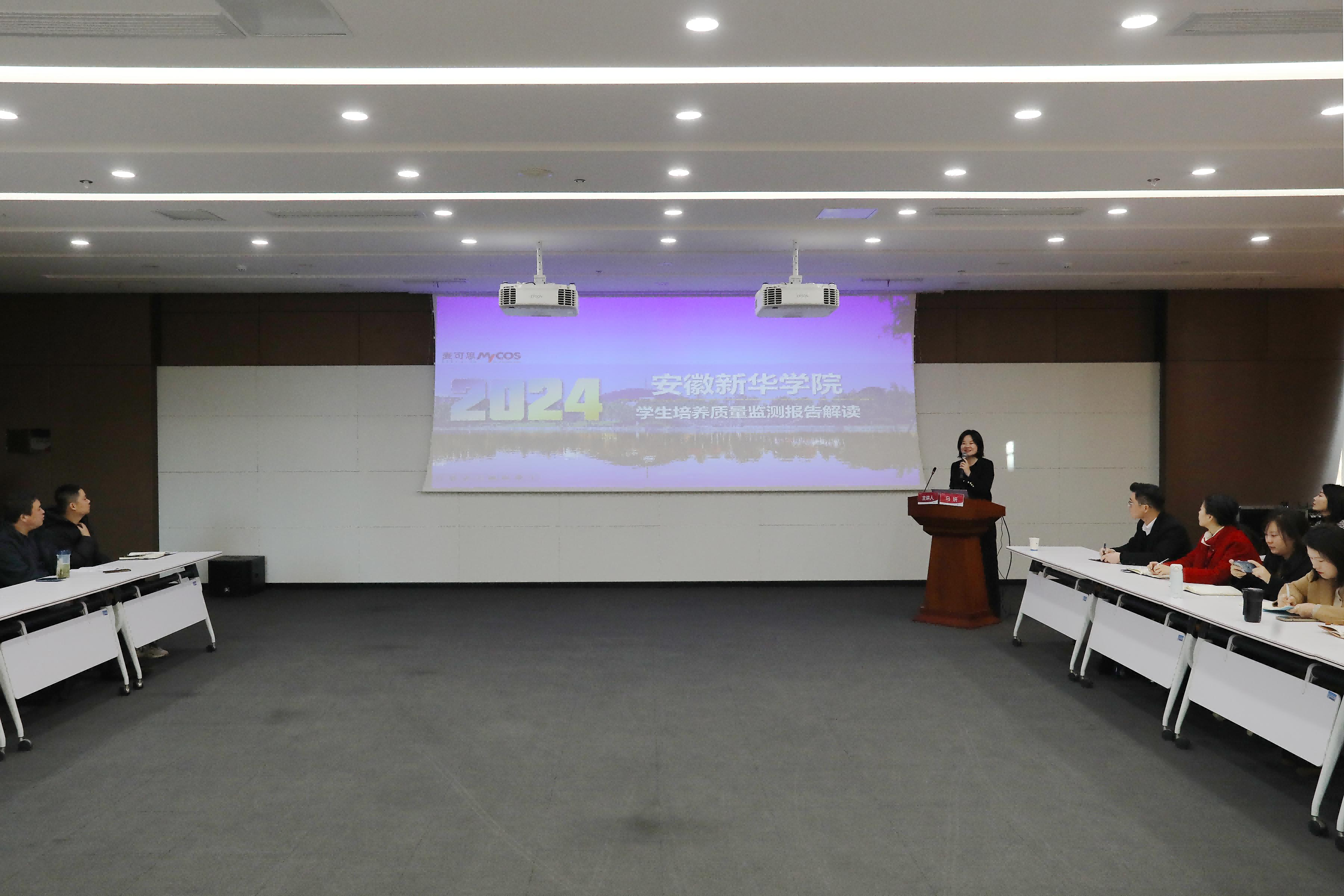 本网讯(通讯员:刘晓蓉)1月12日上午,学校邀请麦可思研究院副院长马妍来校开展人才培养质量监测数据分析解读。校董事长储国定,常务副校长王丽,副校长戴昕,校长助理王琦进、邵玲以及教务处、评建办、招生办、学生处负责人,各二级学院院长、执行院长、副院长/助理、行政秘书、学生处全体人员参加会议,会议由邵玲主持。