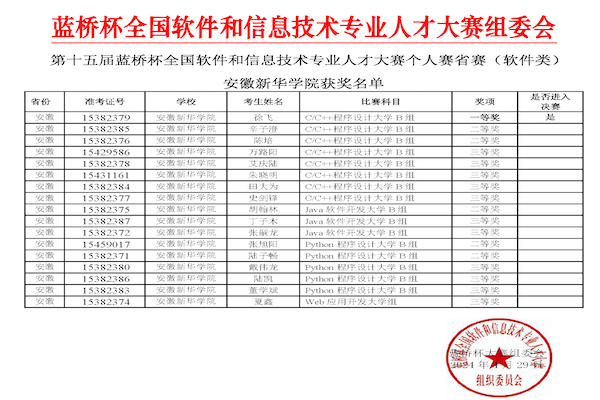 本网讯(通讯员:袁书萍)近日,第十五届蓝桥杯全国软件和信息技术专业人才大赛个人赛省赛在全国31个省、市、自治区举办。来自北京大学、清华大学、复旦大学、上海交通大学等1900多所高校的23万名选手同台竞技,在C/C++、JAVA、Python、软件测试、单片机、嵌入式、物联网、EDA等八大竞赛科目中进行了激烈比拼,呈现了一场高标准、高质量、高水平的精彩赛事。贝博官网学子与全国各大高校学生同台竞技,所有参赛选手均获奖项,贝博官网大数据与人工智能学院荣获省赛一等奖1项,二等奖5项,三等奖11项,荣获佳绩。