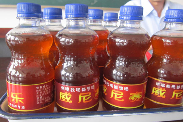 保健药酒是由刘自平老师带领学生历时四个多月研发的,药材是由枸杞、茱萸肉、淫羊藿、黄精、党参等十多味组成,药材经粉碎用原浆酒浸泡一定时间再经过滤及离心后,加适当蜂蜜调配而成。(用来浸泡药材的白酒系传统工艺酿造的纯粮食原浆酒)该保健药酒入口微甜,具有淡淡的药香和酒香,有益阴补气和增强免疫力等功效。