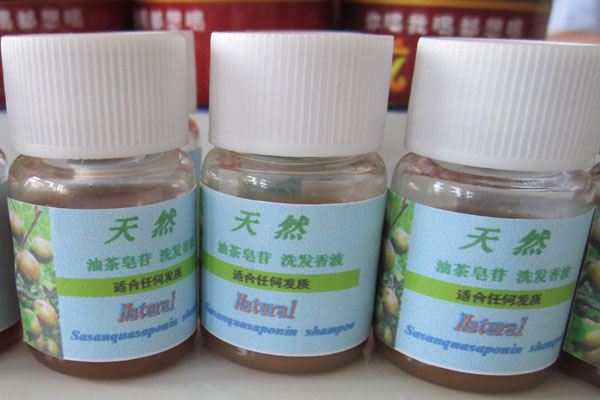 茶油洗发香波由施伶俐老师带领学生自主开发研制。该洗发产品以油茶籽榨油后的副产品茶粕为原料,提取具有杀菌止痒,养发护发作用的茶油皂,融入现代配制工艺,带来全新的天然植物成分洗发产品。