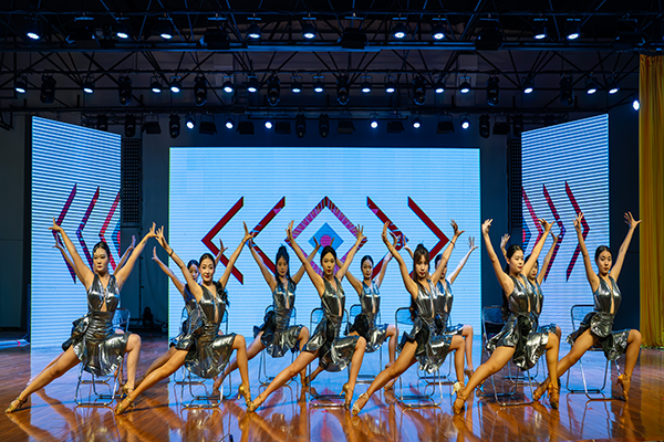 整场晚会共14个舞蹈节目,展示了师生们多年学习与实践教学的成果,以《华韵》艺术表演舞开场,展现了“刚柔相济”的中华美学。其中花鼓灯《淮畔幽兰》、爵士舞《Jazz Girl》《芭蕾基本功展示》、街舞《做自己的太阳》和少儿舞蹈《灿烂的日子》凸显了艺术学院以市场为导向,以夯实专业基础为抓手,不断提高舞蹈专业教育教学质量,学生们基本功扎实,表现力强。随后的艺术表演舞更是形式多样,传统的旗袍长衫与柔情的伦巴融合出了一支独具特色的《兰亭序》,艺术表演舞《狂欢之夜》《咏春》《博弈》以及教师作品《Dangerous》《西班牙斗牛舞》的呈现将晚会推向了高潮。最后,晚会在20级全体同学带来的舞蹈《我的未来式》中来到了尾声,他们热情、青春、充满活力自信的表演为本场汇报演出拉上了帷幕。