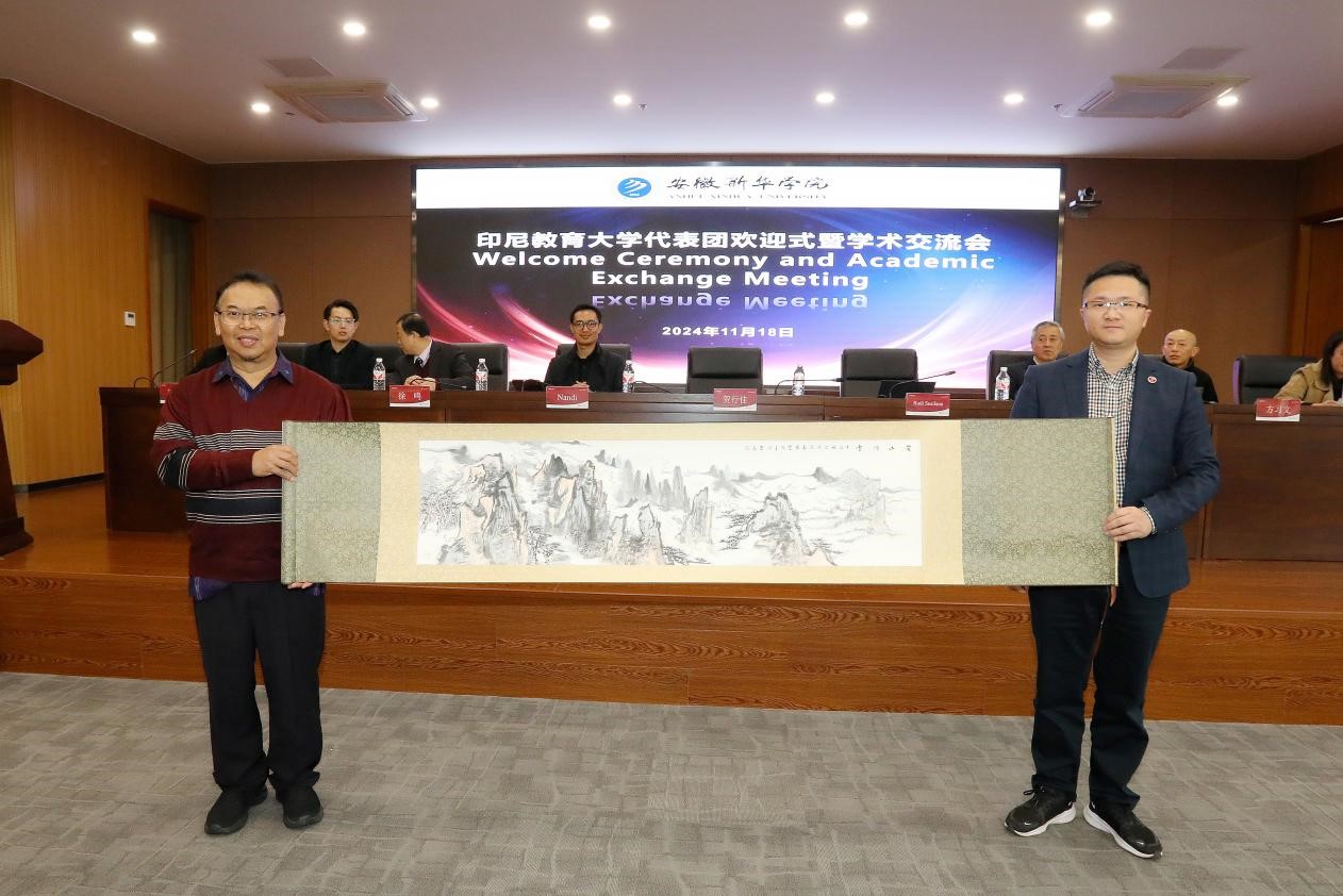 在欢迎式上,BB贝博艾弗森官方网站副校长贺行佳代表学校欢迎印尼教育大学代表团的到来,并详细介绍了新华学院的发展历程和办学特色。他表示教育是连接多元文明的桥梁,是促进心与心相通的纽带,在“一带一路”倡议下,今天的会面不仅是两校交流的新起点,也是助力贝博官网教育工作在国际化发展道路上更进一步。随后,印尼教育大学教育学院院长Rudi Susilana对贝博官网的接待表示感谢,并介绍了印尼教育大学的办学情况,他欢迎中方师资与管理团队去印尼教育大学参观访问,期待双方可以继续合作开展新的项目。文化与传媒学院执行院长洪玉介绍了学院教育学科的优势及发展现状,希望双方能从学术会议、师生交流等领域加强合作,共同发展。会议期间双方互赠了礼品。