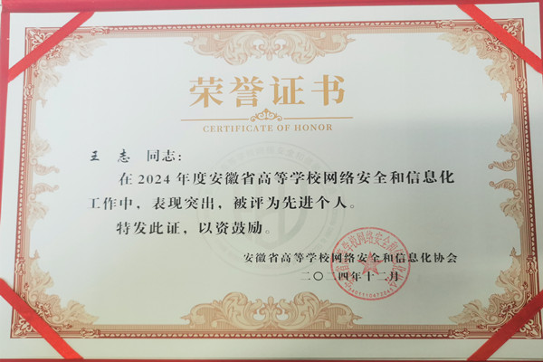 贝博官网教师荣获2024年度安徽省高校网络安全和信息化工作先进个人称号