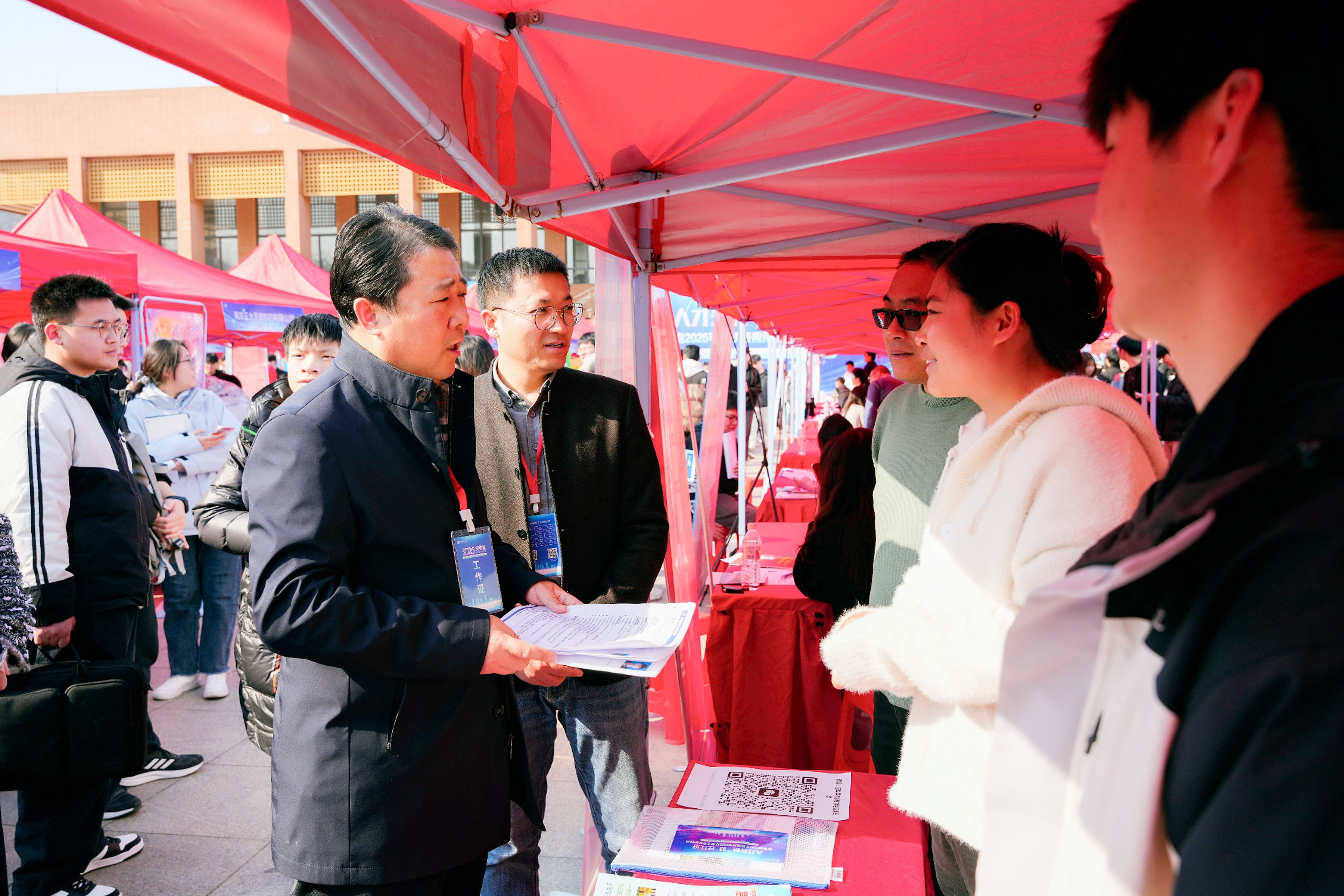 本网讯(通讯员:宋学松 摄影:融媒体工作室/张慧欣、朱雯雯、杜一晟、卢晓雪)3月19日下午,“人才兴皖、‘就’在江淮”安徽省2025年高技能应用型毕业生专场招聘会在贝博官网图书馆南广场成功举办。本次招聘会由安徽省教育厅主办,BB贝博艾弗森官方网站、合肥市蜀山区人力资源和社会保障局承办。省大中专毕业生就业指导中心主任张秋田,省教育厅高校学生处四级调研员黄兵、蜀山区人社局人才中心副主任赖英等一行领导莅临现场指导,省督导专员、校党委书记邸建伟,副校长王琦进及学生处相关人员全程陪同。