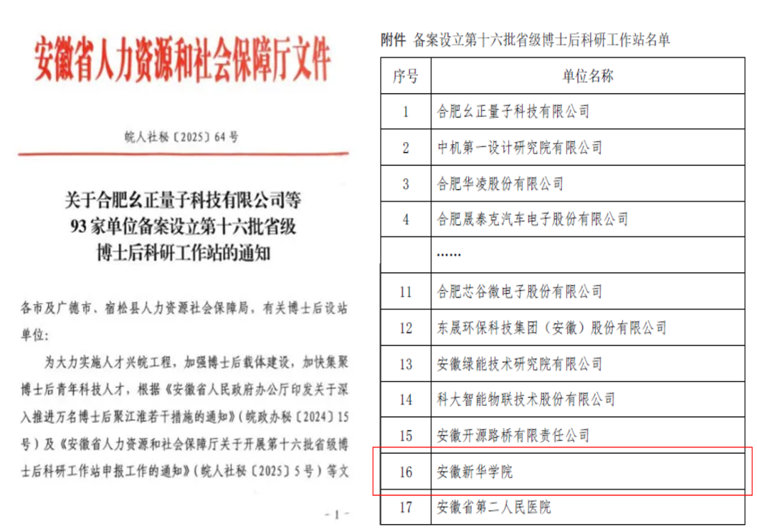 本网讯(通讯员:潘玲阳)根据安徽省人力资源和社会保障厅《关于设立第十六批省级博士后科研工作站的通知》(皖人社秘〔2025〕64号),贝博官网成功获批设立省级博士后科研工作站,成为合肥市高新区唯一拥有博士后科研工作站的高校。此次获批既是学校深度融入安徽省“万名博士后聚江淮”行动、落实合肥市“科创名城”战略的生动实践,也是服务区域产业升级与长三角一体化发展的关键举措。