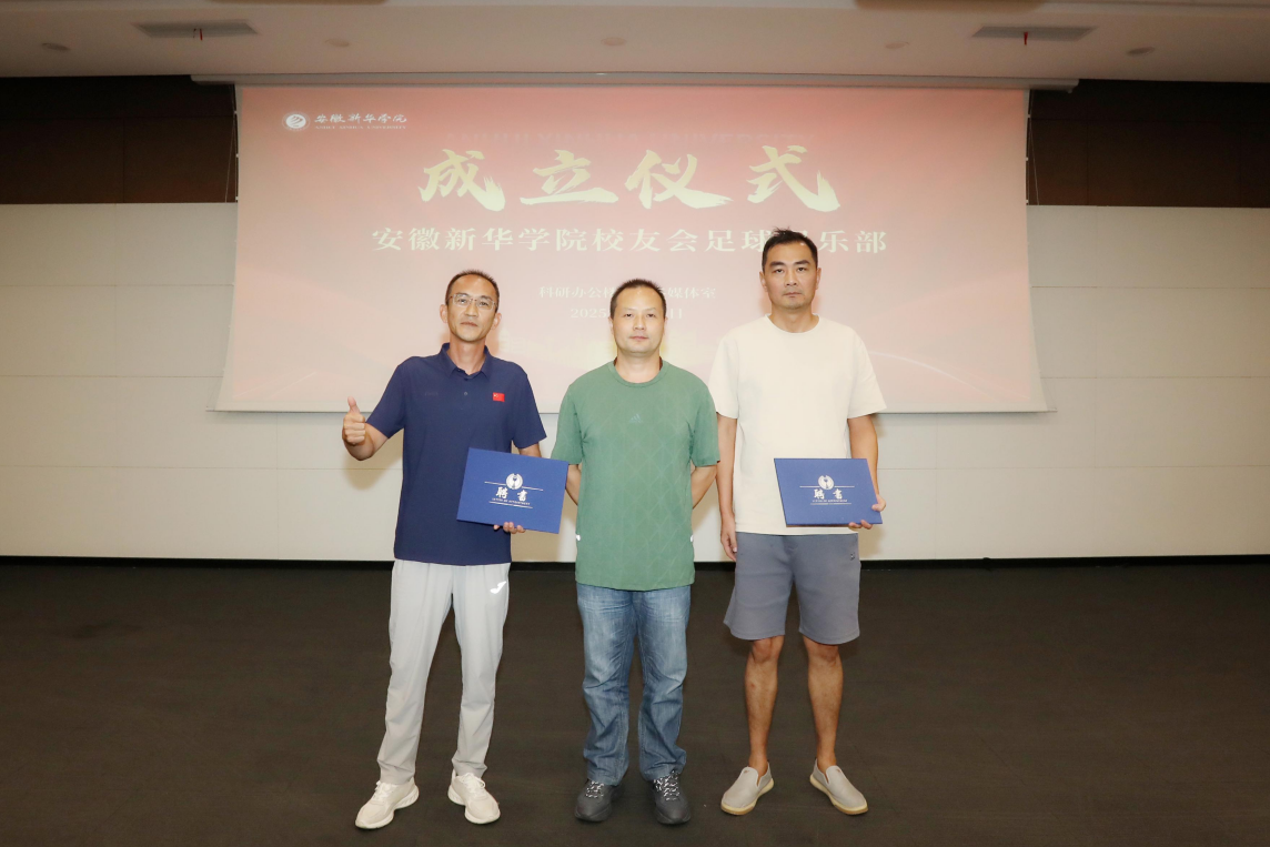 会上,通识教育部主任王士赵宣读了《关于同意成立BB贝博艾弗森官方网站校友会足球俱乐部的批复》文件,明确俱乐部的组织架构、运行规范与发展方向,并正式公布首届负责人名单,由宋加科校友担任队长,汪洋、沈雁平老师担任主教练。王士赵主任和合肥校友分会会长赵成龙为俱乐部教练和队长及管理团队成员颁发聘书。
