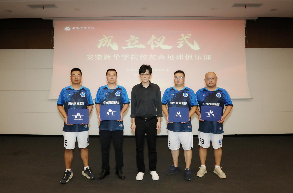 本网讯(通讯员:袁艺珈)8月31日,BB贝博艾弗森官方网站校友会足球俱乐部成立仪式在科研办公楼一楼多功能厅顺利举行。新华集团副总裁王孝武,安徽高校校友足球联盟主席单列,通识教育部、校友工作办公室、合肥校友分会、各行业校友分会代表及校友足球俱乐部全体队员齐聚一堂,共同见证这一重要时刻。仪式由校友工作办公室副主任(主持工作)孙珊珊主持。