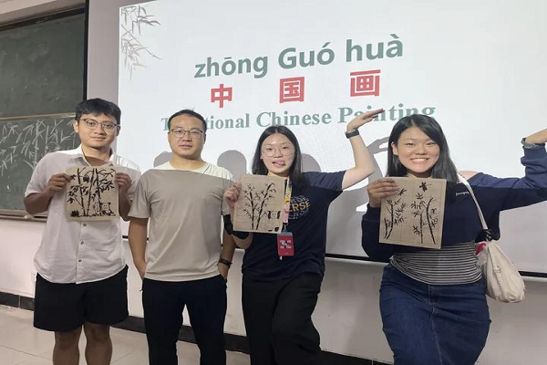 在文化体验环节,新生通过起中文名、写汉字、画国画、体验剪纸等活动,感受中文魅力与传统工艺智慧。来自蒙古的BAYANMUNKH TSELMEG选择“清月”作为中文名,称其“既有美感,又含中文韵律”。