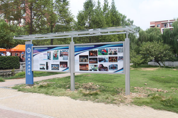 文化与新闻传播学院前也增添了设新宣传栏,从原来的纸板式全面升级为玻璃镶嵌式。玻璃镶嵌不仅干净亮丽,上方的玻璃顶还为雨天未带伞的学生提供了避雨场所。2013级文化与新闻传播学院的新生张丹立进行了全面的评价,并表示很喜欢。