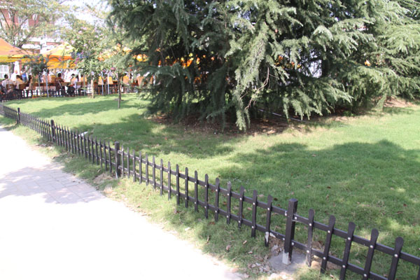 圆楼对面的草坪原来没有木栅栏,草坪有一定的损坏,影响美观。现在黑色的栅栏围绕在老图书馆前的草地,简洁时尚,2013级土木与环境工程学院的新生许鑫鑫说,木栅栏保护了花草树木的同时也显得美观。