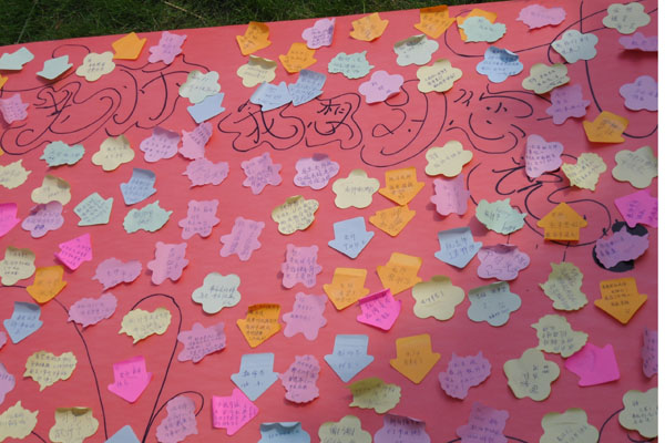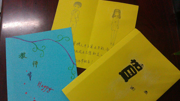 继续教育学院团总支学生会发出倡议,希望全体同学用一句话、一条短信、一条微博表达对老师的节日祝福。同时制作“给老师的一句话”便利贴板报,祝老师们节日快乐。