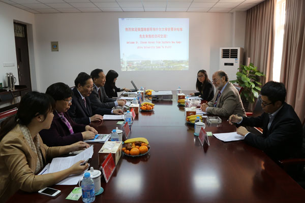 本网讯(记者 代玲玲)10月29日上午,美国南新罕布什尔大学国际办公室主任史蒂夫•哈维先生来贝博官网参观访问,并和贝博官网执行董事王孝武进行了深入会谈。院长石秀和教授、副院长杨世国教授在行政楼第二会议室热情接待了来宾,国际交流合作中心、国际教育学院、商学院等相关人员参加了座谈会。