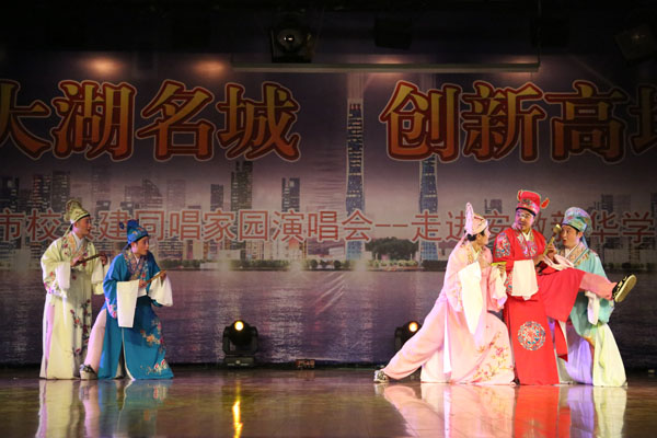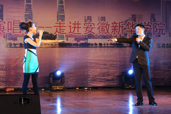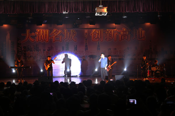 新华学院报讯(学生记者 李文焕、康引兰)10月31日晚,学校大礼堂灯火通明,由市委市政府牵头,市文广集团承办的“大湖名城 创新高地——市校共建同唱家园大型演唱会”演出在这里举行。此次晚会展现了合肥市委、市政府面对新形势、新市情,打造“大湖名城、创新高地”的战略决策和美好愿景,为城市和高校协同共建搭建了平台。