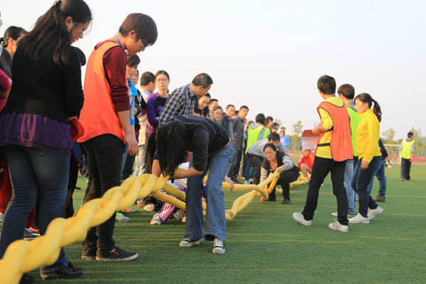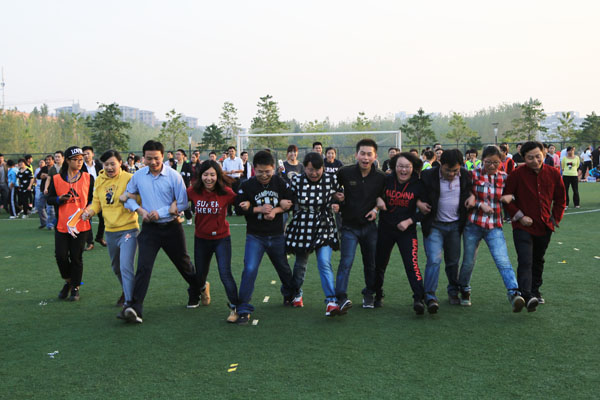 从运动会开始到结束,参赛的每一个运动员每一个团队都牵动着在场员工的心弦。同呼吸,共命运。彼此加油、欢呼、喝彩。现场欢声笑语此起彼伏。虫虫总动员拉开了运动会的的帷幕,各代表队一听到口哨声咬紧牙关奋力向前,队员们一个个面红耳赤,争相以最快的速度冲向终点,谁也不让谁。接下来的袋鼠搬家和无轨列车再次活跃了现场气氛,运动员们的体力尽管消耗了大半,依旧满怀激情地将比赛进行到底,赛道边上的呐喊声与敲锣打鼓声交织在一起。之后,众星捧月、鸿运通途、扎辫子和绑腿跑依旧有秩序地进行着,运动会也渐渐接近了尾声。
