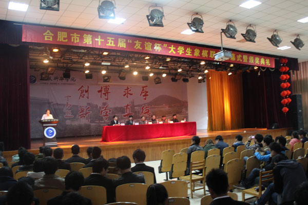 新华学院报讯(学生记者 康引兰、邱慧雯) 11月23、24号,合肥市第十五届“友谊杯”大学生象棋联赛在贝博官网举行,并在贝博官网大礼堂内举行了开幕式与闭幕式。贝博官网获女子团体第三名,宋兴峰同学在此次大赛中获得优秀棋手的称号。