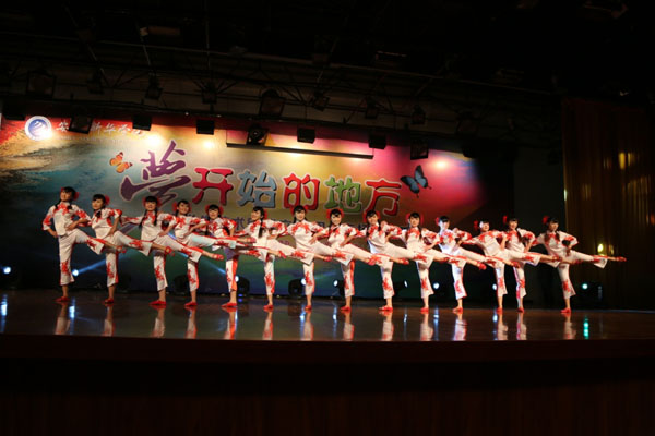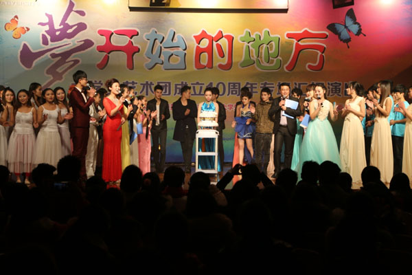 演出结束后,集团、校领导上台与演员亲切握手并合影留念。晚会圆满落幕。