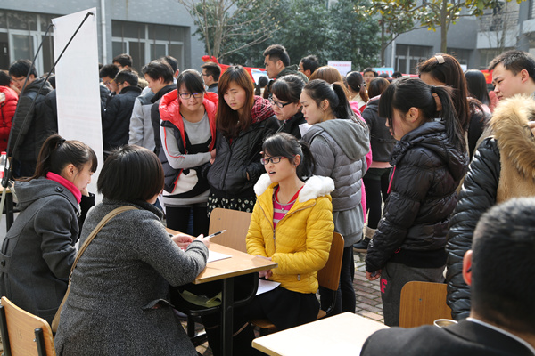 在招聘会现场,每位毕业生都手持精心准备好的自荐书和简历,整队有序入场,积极与企业招聘人员交流,展现新华学子的良好风貌。不少2015届毕业生也在校园毕业季节的感染下,加入了求职的人流进行学习观摩,了解企业用人标准和自身的差距,以期为自己来年的面试做好准备。