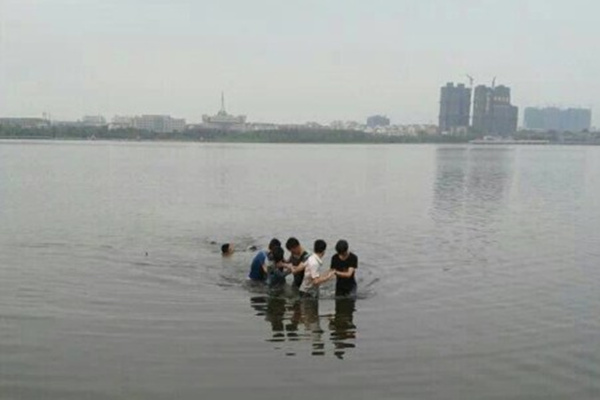 刚一下水,邓浩就被水下的渔网绊住了。此时,他吓了一大跳。他摸索着向该女子靠近,渐渐的湖水漫过他的鼻尖部位。邓浩说,当时不会游泳的他确实有点害怕了,他把竹竿尽量向前伸,想让落水者抓住。然而竹竿距离落水者始终还差1米的距离。他觉得不能放弃,定了定神,招呼岸上的同伴一起下水来,男生们纷纷下水前去帮助邓浩,一场手拉手的救人行动便开始了。5个人手拉手,一面慢慢地向落水女子处摸索着前行,一面不断安慰她,让女子冷静下来,让她不要剧烈挣扎以保持体力。正在此时,一个会水的大爷跳下水来游向落水女子,大爷一手拖住了女子,一手抓住竹竿,大家一起努力将落水女子救上了岸。