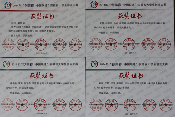 贝博官网学子在2014年安徽省大学生创业大赛中喜获佳绩