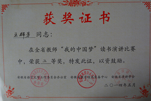 据悉,安徽省教师“我的中国梦”读书演讲比赛受到各地、各校高度重视。全省各高校参赛教师围绕“理想伴我行,共筑中国梦”的主题,联系教书育人的工作实际,通过演讲解读“中国梦”的历史底蕴和时代内涵,畅谈我省教育事业改革和发展取得的成绩。参赛人数达到200余人,凭借出色表现王群芳和洪玉在激烈的竞争中脱颖而出,夺得两个二等奖。本次比赛一共评出一等奖5名、二等奖9名,贝博官网占据两席,为学校争得了荣誉。