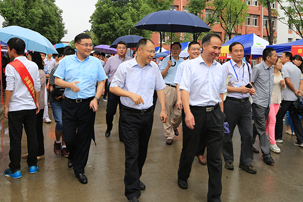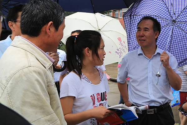 本网讯(记者 姚欣)6月26日,2014年安徽省(皖中片)高招咨询会在贝博官网成功举行。安徽省委教育工委书记、省教育厅厅长程艺冒雨亲临现场视察指导工作,亲切慰问参展高校代表,并为考生报考作指导。安徽省教育招生考试院招生考试研究处处长胡雨生、新华集团董事长吴俊保,集团公司副总裁、贝博官网执行董事王孝武,校领导胡昭林、石秀和、杨世国、倪征在现场陪同。