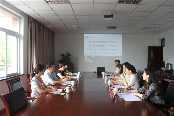 本网讯(卜梦然)6月27日上午,美国玛赫西管理大学副校长朱允祥博士一行来贝博官网参观访问。在国际交流合作中心老师的陪同下,来宾参观了整个校园,朱允祥博士对贝博官网优美的校园环境赞不绝口。BB贝博艾弗森官方网站副院长杨世国教授、信息工程学院和国际交流合作中心相关负责同志在学院会议室热情接待了来宾。