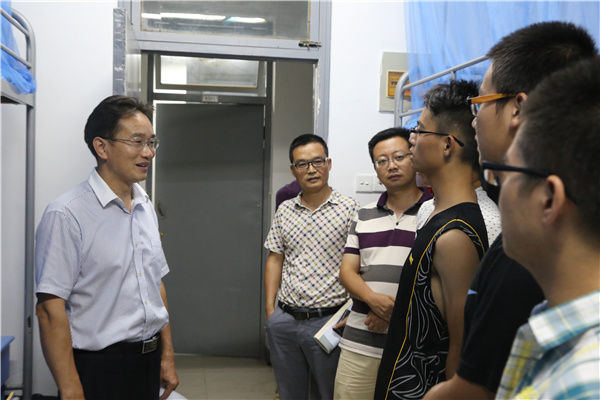 副院长杨世国教授在走访过程中,提醒新生要提高安全意识。对新生即将到来的军训,杨世国说:“希望你们能够做好充分的准备来迎接大学的第一课”。
