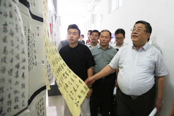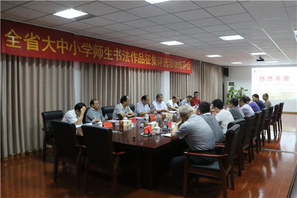 本网讯(学生记者 宁薛敏、张志彦)9月5日,全省大中小学师生书法作品征集评选活动终评会在BB贝博艾弗森官方网站举行。省教育厅总督学李明阳,省文联副主席、书记处书记、省书法家协会副主席吴雪,新华集团副总裁、学校执行董事王孝武,学校党委书记、督导专员胡昭林等出席活动。