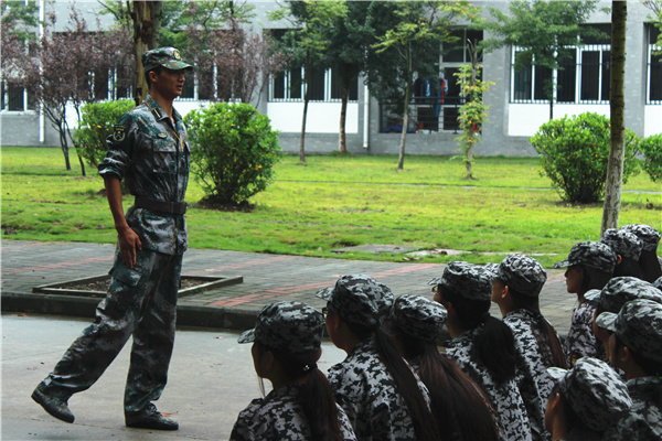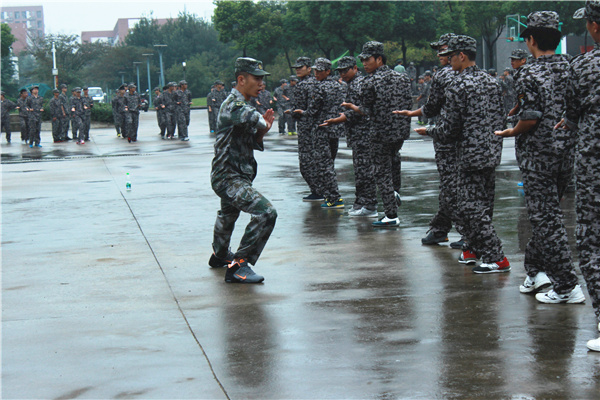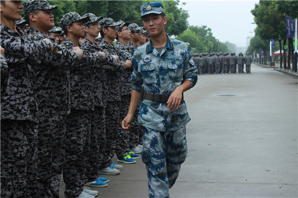 一提到二营十二连的周教官,听到的就是“好帅啊”,“好温柔体贴的”,“笑起来好阳光的”诸如此类。周教官高大潇洒,眉清目秀。在训练时认真有耐心,不厌其烦地示范站姿正步等动作。周教官还在枯燥的训练中扮演着开心果的角色,常逗乐全场。他向每个宿舍征集两首歌,他学着唱给新生们听,一首《情非得已》还引来了别的连队观看。