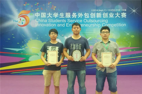 本网讯(孟翠翠)9月11日至13日,第五届中国大学生服务外包创新创业大赛决赛在江苏无锡举行。在创业实践组中,贝博官网信息工程学院2013级计算机应用技术专业沈宏宇、朱晓宇、吴郑、夏威、徐忠新五位同学获团体三等奖。