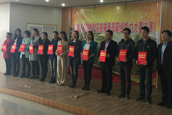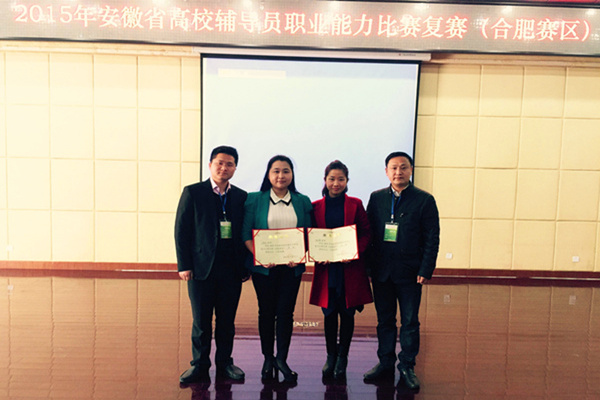 贝博官网参赛辅导员凭借自身过硬的素质和从事辅导员工作的丰富经验,顺利完成了各个环节的比赛。经过激烈角逐,王强亚和潘驰群两位老师凭借出色表现,以优异成绩脱颖而出,分别获得“2015年安徽省高校辅导员职业能力比赛复赛(合肥赛区)”一等奖和三等奖,取得了历史最好成绩。