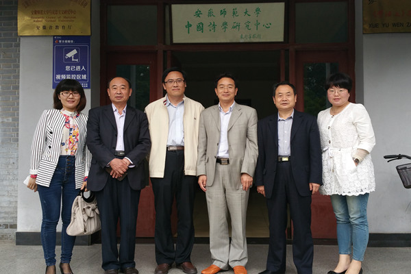 安徽师范大学副校长朱家存、政法学院党委书记陈孔祥、文学院党委书记余大芹、团委副书记张园园等人热情接待了贝博官网考察组,并介绍了基地建设管理和研究工作开展、大学生素质拓展活动的相关经验。考察组认真学习了安徽师范大学的基地建设管理经验和特色做法,参观了中国诗学研究中心并与中心主任进行了深入交流。