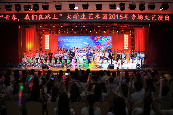 演出结束后,集团董事长吴俊保等领导到后台亲切看望并慰问了全体演出人员,吴俊保对演出的成功表示祝贺并高度评价了此次演出。领导们的关心与鼓励让在场的每一位艺术团同学欢欣鼓舞,现场掌声经久不息。“青春,我们在路上”大学生艺术团2015年专场晚会自筹备以来,全体艺术团成员团结一心,刻苦努力,精心排练出的13个节目得到了全校师生的广泛认可与好评。