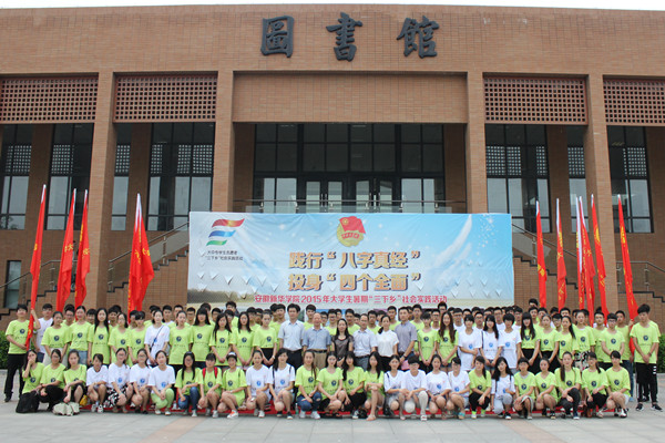 今年三下乡以践行“勤学、修德、明辨、笃实”八字真经,投身“全面建成小康社会、全面深化改革、全面依法治国、全面从严治党”四个全面为主题,以纪念抗日战争胜利70周年为契机,贝博官网组建了15支校级立项实践队,即日起将赴泾县茂林镇、凤阳小岗村等地开展“送文艺下基层”、“纪念反法西斯战争胜利70周年爱国主义教育活动”、“医疗下乡”、“关爱留守儿童”等多种形式的主题活动。