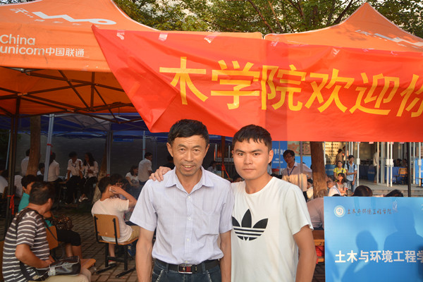 土木与环境工程学院道路桥梁专业的新生方国锋的父亲显得略微羞涩,话虽不多,但眼神里充满了对儿子的期待,他淡淡地说道:“我只希望我的孩子能读好书,找好工作,将来过得很幸福。”