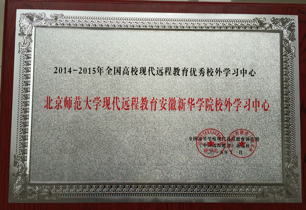 贝博官网喜获“2014-2015年全国高校现代远程教育优秀校外学习中心”荣誉称号