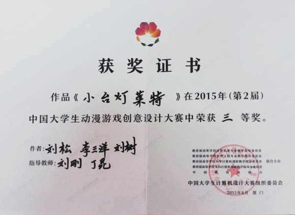 本网讯(通讯员:刘刚)近日,第二届中国大学生动漫游戏创意设计大赛传来喜讯,由贝博官网动漫学院刘刚、丁昆老师指导,2012级学生刘松、李三洋、刘树三人完成的作品《小台灯莱特》获得全国三等奖。这是动漫学院今年在学科专业竞赛中取得的又一项全国性奖项。