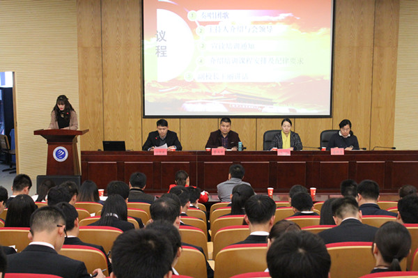 本网讯(通讯员:杨雨婷)为全面落实上级党团组织指示精神,加强大学生思想政治教育,促进学生干部更好更快地成长,4月6日下午,贝博官网第五期“青年马克思主义者培养工程”(以下简称“青马工程”)暨校级大学生骨干培训班开班典礼在学术报告厅顺利举行。副校长王丽、宣传处处长管玉中、学生处副处长兼团委副书记汪俊东、院办副主任盛晓青、校团委全体老师、各二级学院团总支书记和近130名优秀学生干部参加了培训开班典礼。开班典礼由汪俊东主持。