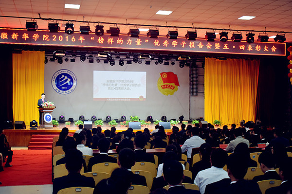 本网讯(通讯员:杨雨婷) 为继承和发扬共青团优秀传统,表彰先进,树立典范,鼓舞华园青年积极向上,5月11日中午,校团委在校大礼堂组织召开了2016年BB贝博艾弗森官方网站“榜样的力量”优秀学子报告会暨五·四表彰大会。新华集团副总裁、校执行董事陆真,教务处处长李志远,人事处处长黄君婕,宣传处处长管玉中,院办副主任贺行佳、盛晓青,学生处副处长、团委副书记汪俊东和各二级学院执行院长、副院长、院长助理、团总支书记出席了大会。