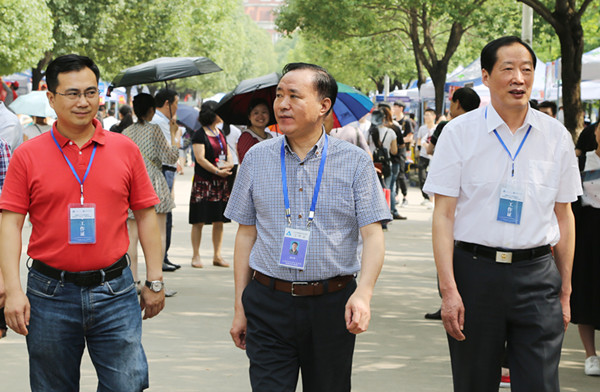 本网讯(王友雅,学生记者:苏雯雪、许馨元,摄影:陆如海、汪洋)6月26日上午,由安徽省教育招生考试院主办的安徽省2016年普通高校招生(皖中片)现场咨询会在贝博官网举行,这是贝博官网自2011年起连续承办的第6次高招咨询会。现场共有来自全国20多个省市的300余所高校的工作人员为考生和家长提供咨询服务,解答报考疑惑。安徽省教育招生考试院院长助理、普通高校招生处处长袁江林在新华集团副总裁、学校执行董事陆真,新华集团副总裁、学校监事会主席黄源,省督导专员、学校党委书记储国定和相关部门负责人的陪同下,亲临现场指导工作。