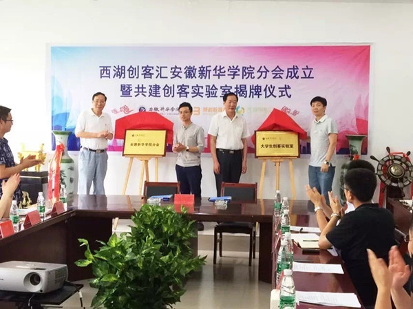 最后,储国定、石秀和、熊彪、谢源宏共同为西湖创客汇按BB贝博艾弗森官方网站分会和创客实验室揭牌。